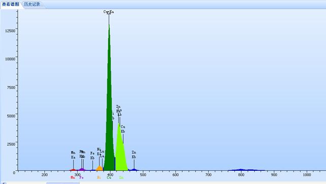 以下使用EDX-P530型对镍黄铜实际测试的所得的谱图,工作曲线等相关数据: