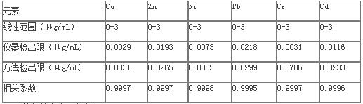 表3 ICP—AES测定土壤重金属的线性、灵敏度、检出限