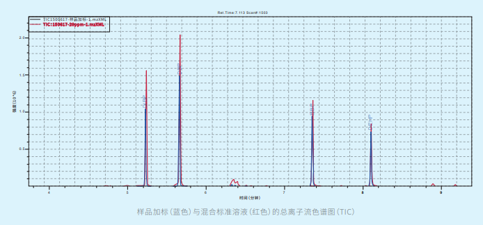 柱箱升温程序参考:80℃(0min)至 280℃(8min)( 视样品基材,参数会有调整)