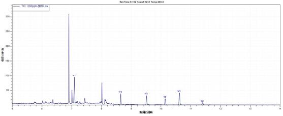 测定方式:TIC(FULL SCAN)定性(扫描范围:45-450amu),SIM模式定量。