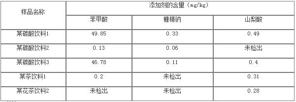 采用上述法测试部分碳酸饮料及茶饮料1结果如下表10所示。