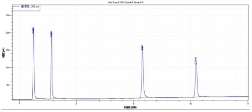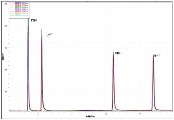 图3. 4种邻苯二甲酸酯类标准溶液重复性谱图叠加图