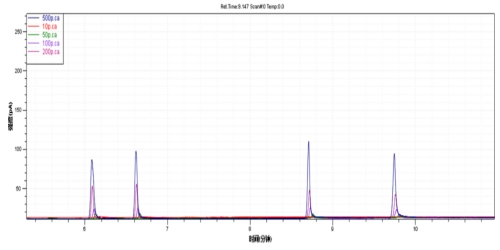 图2. 4种邻苯二甲酸酯标准溶液线性谱图叠加