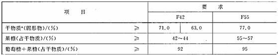 果葡糖浆是由植物淀粉水解和异构化制成的淀粉糖晶,是一种重要的甜味剂。本品为无色或浅黄色、透明的黏稠液体。甜味柔和,具有果葡糖浆特有的香气,无异味。无正常视力可见杂质。因为它的组成主要是果糖和葡萄糖;故称为“果葡糖浆”。 果葡糖浆是由葡萄糖和果糖组成的一种混合生物酶转化糖浆,同时也是一种高甜度的淀粉糖,除作为糖源可替代蔗糖应用于食品加工外,果葡糖浆还具有蔗糖所不具备的优良特性,如在口感上,越冷越甜;甜度;在风味上具有不掩盖性;冰点温度低,以及在营养和代谢方面的功能性作用等。国家标准GB/T 20882-2007果葡糖浆中,将其分为两种类型:F42型(果糖含量不低于42%[占干物质]的果葡糖浆)和F55型(果糖含量不低于55%[占干物质]的果葡糖浆)。其质量要求为:
