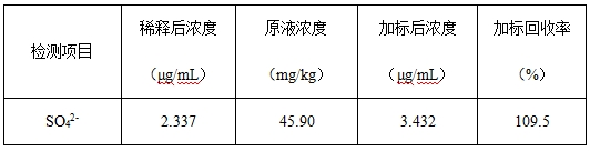 2-)含量,该方法检出限≤0.18μg/mL,保留时间Rt定性重复性RSD为0.15%,SO