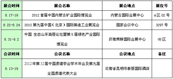 以诚为本赢在诚信90012012年8月份展会、会议预告